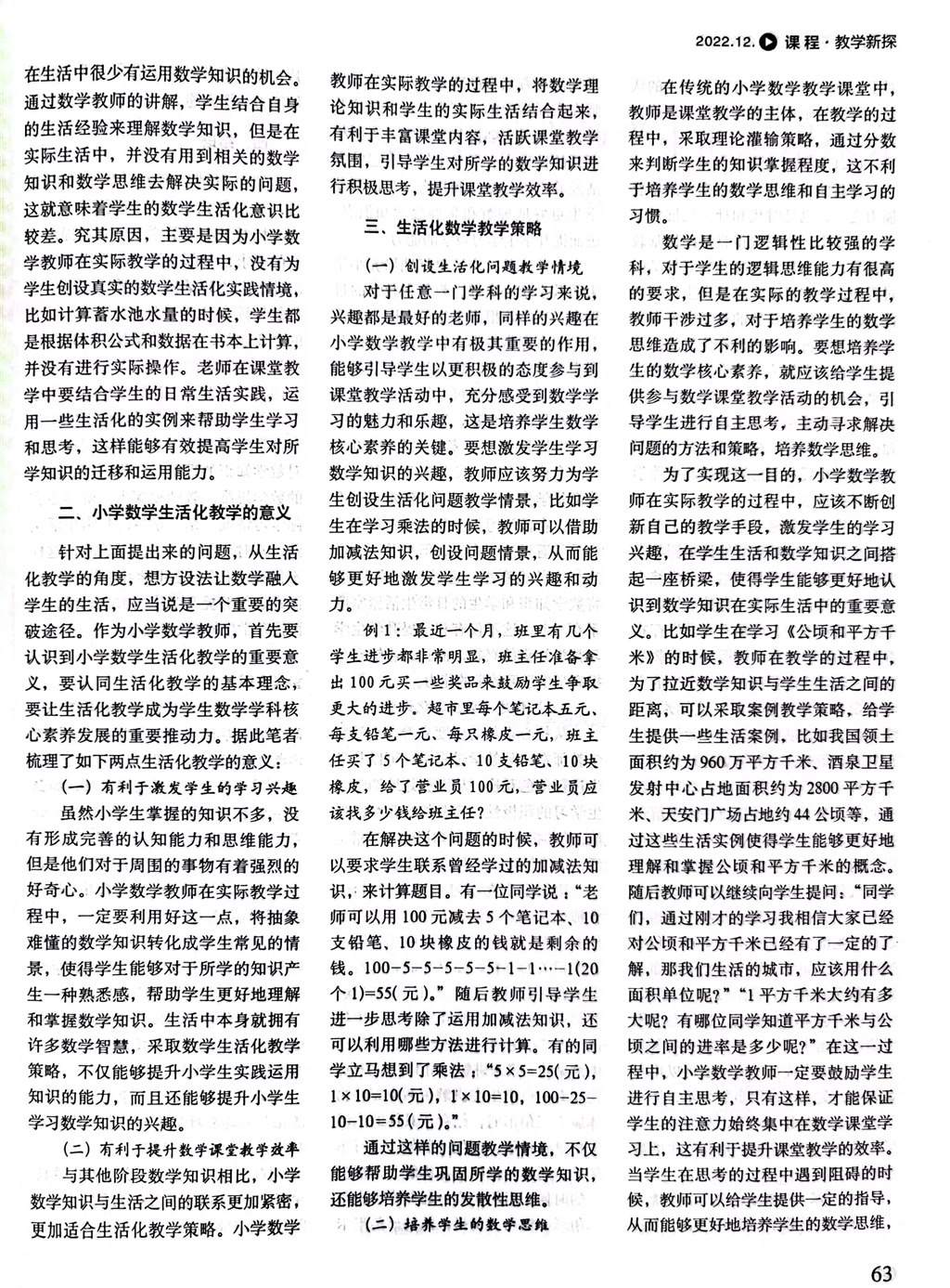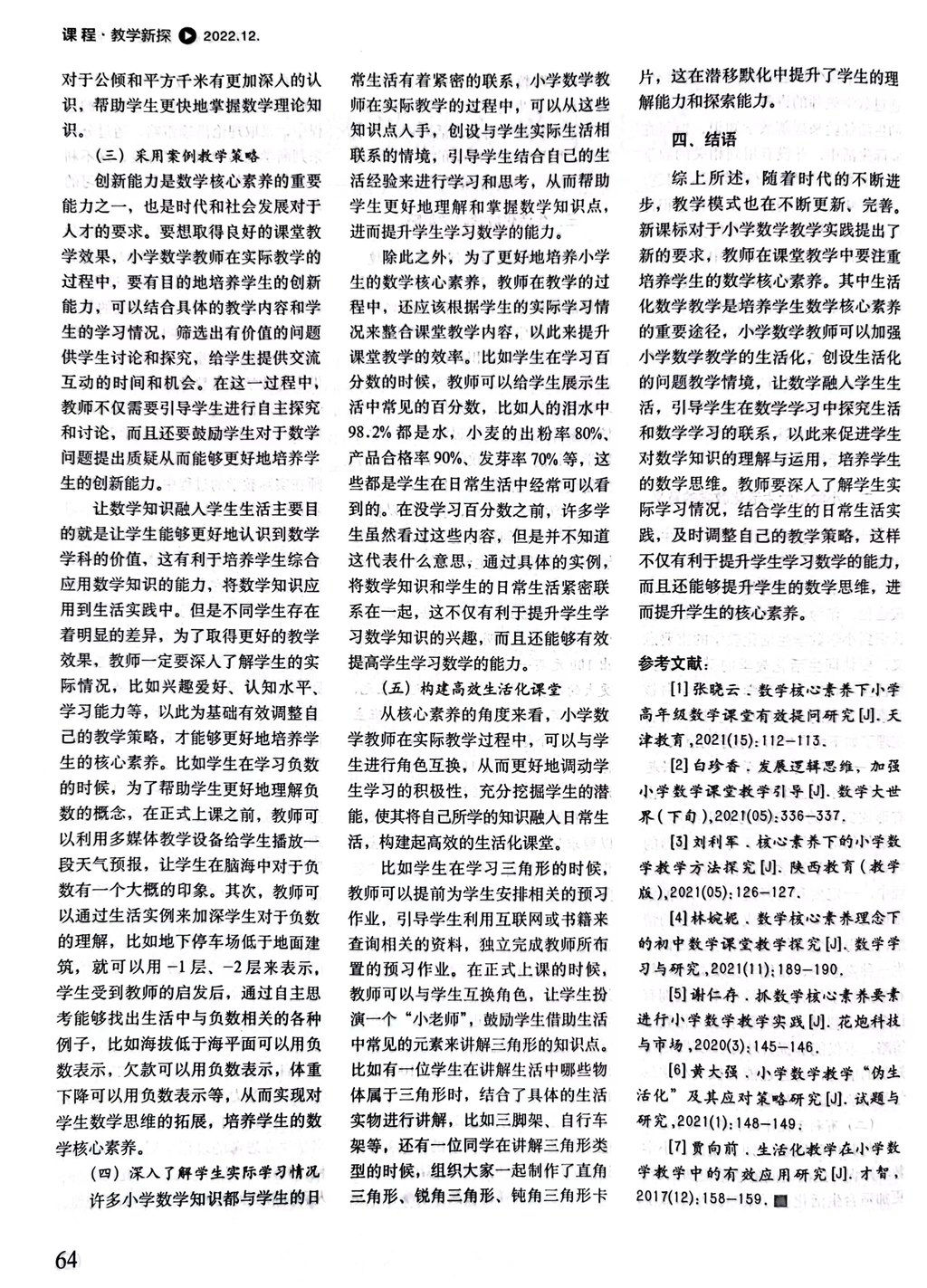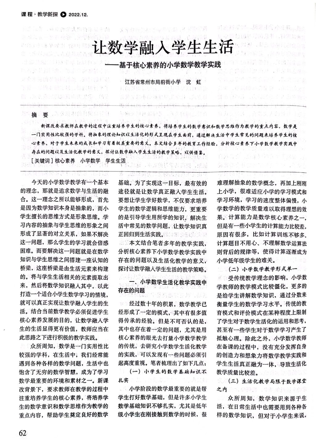 论文发表2:让数学融入学生生活——基于核心素养的小学数学教学实践