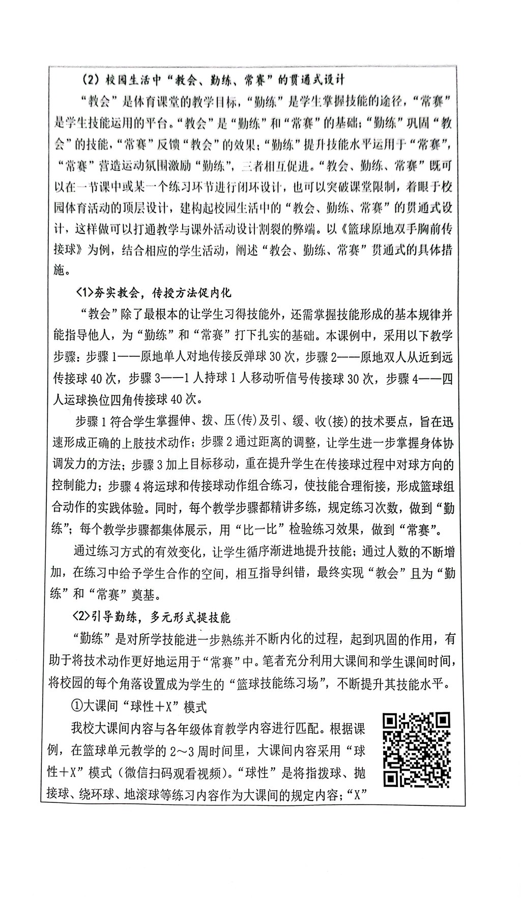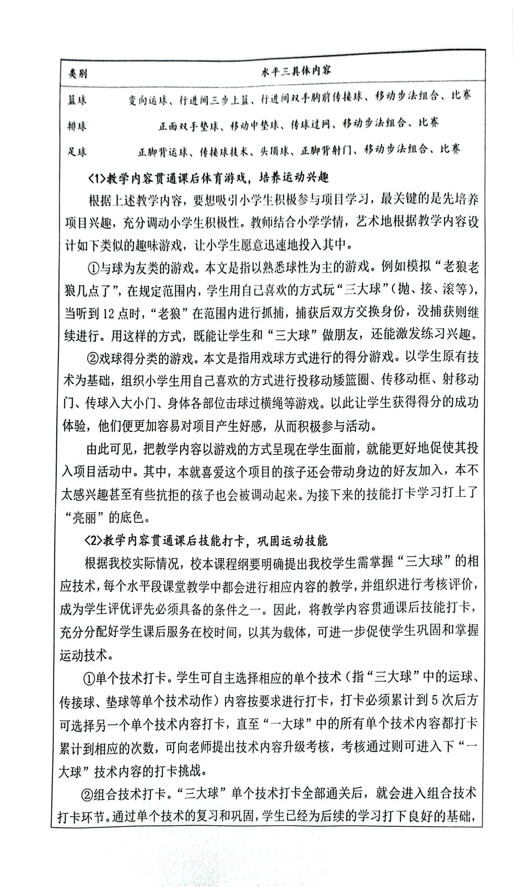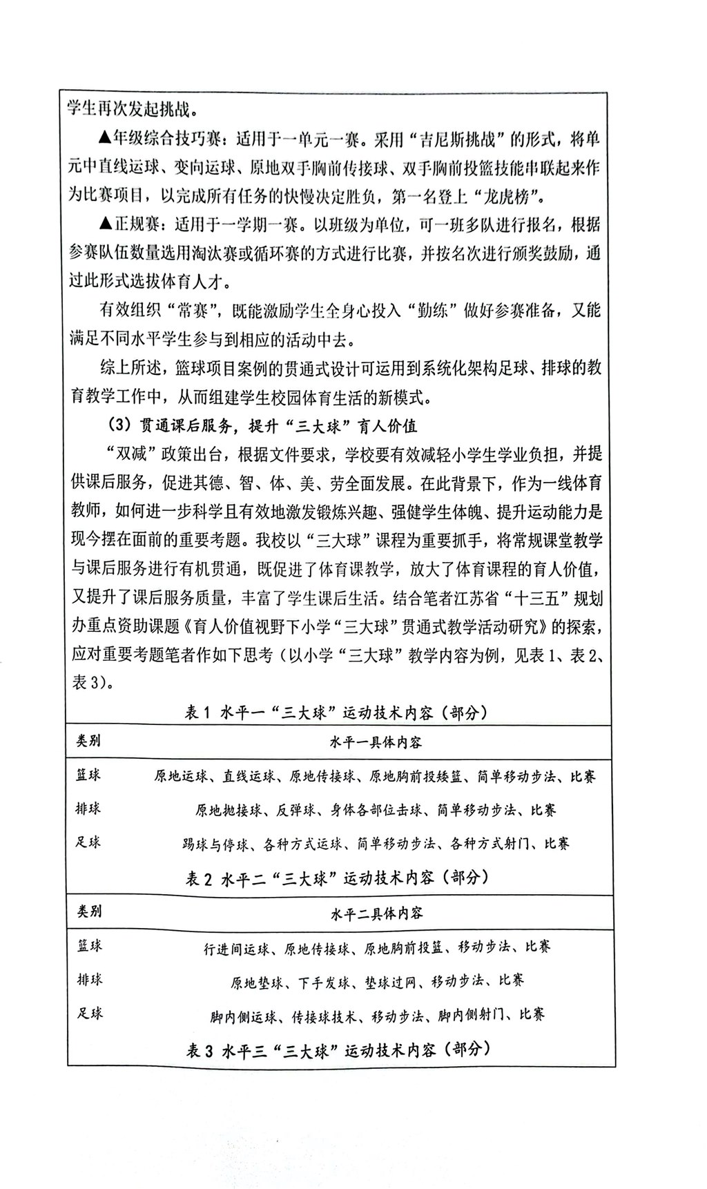 育人价值视野下小学“三大球”贯通式教学活动研究
